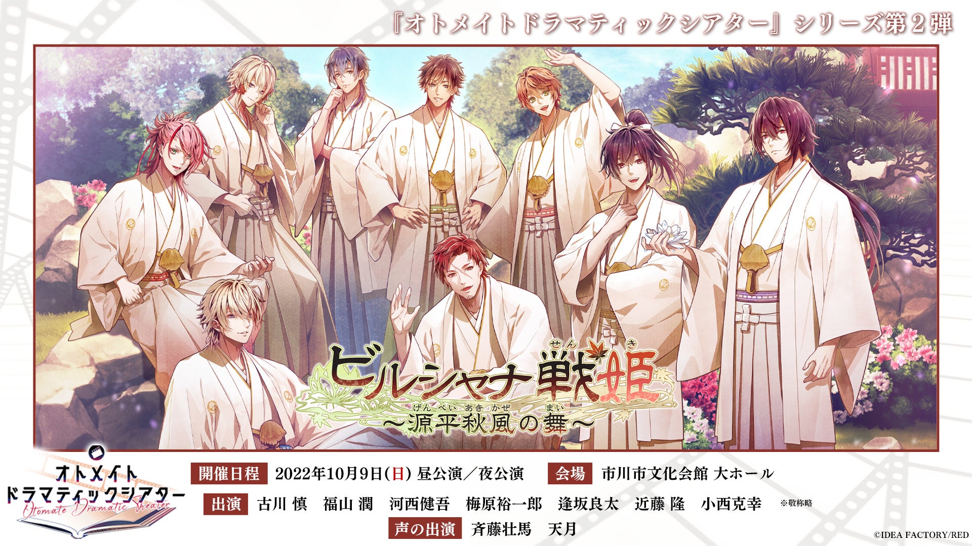 アイディアファクトリー株式会社の女性向けゲームブランド「オトメイト」は、2022年10月9日(日)開催予定『オトメイトドラマティックシアター』シリーズ第2弾「ビルシャナ戦姫 ~源平秋風の舞~」のイベント概要を公開しました。