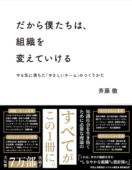 本書は、そんな現状に不満を抱えた人のための本です。前例に基づいて統制された働き方ではなく、メンバーとの対話によって時代の変化に柔軟に対応し、思考や行動を変え、成果に結びつける。その成功の影響を広めていくことで、組織全体の意識を変えていく。そのための具体的な方法を紹介しています。