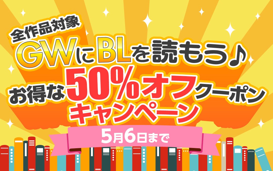 【全作品が半額!?】1冊から使えるGW限定50%オフクーポンを配布中!!お得にBL作品と出会えるチャンスをお見逃しなく!