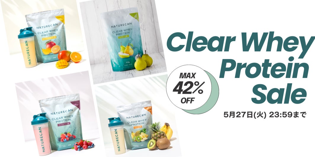 Naturecan Fitness公式サイトでは、5/22(木)~5/27(火)までクリアホエイプロテインセールを開催しております。