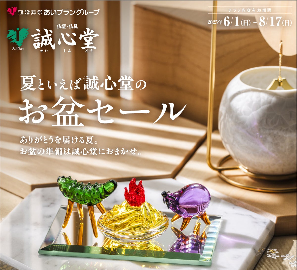 株式会社あいプランの仏壇仏具店「誠心堂」では、2025年6月1日(日)から8月17日(日)まで、毎年恒例の「お盆セール」を全店舗にて開催いたします。