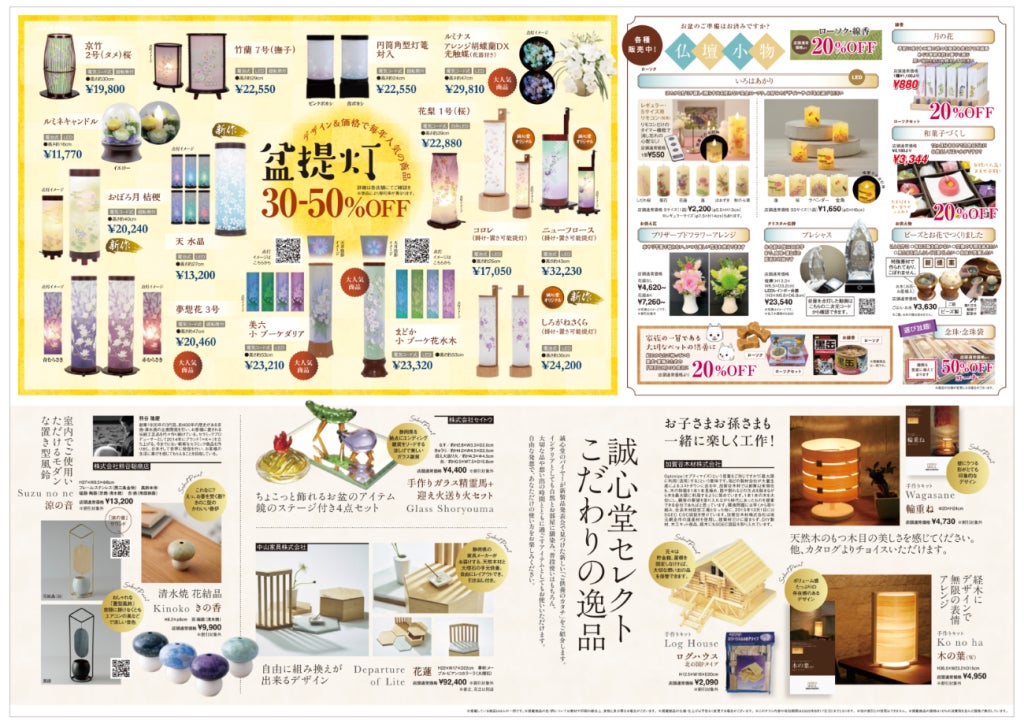 ご先祖様を迎え、ご家族で過ごす特別な季節――誠心堂は、「ありがとうを届ける夏」として、厳選した仏壇・仏具・盆提灯を特別価格でご用意。さらに、今年は「新しいご供養のかたち」を提案する新商品や、夏を彩る雑貨コーナーも展開いたします。