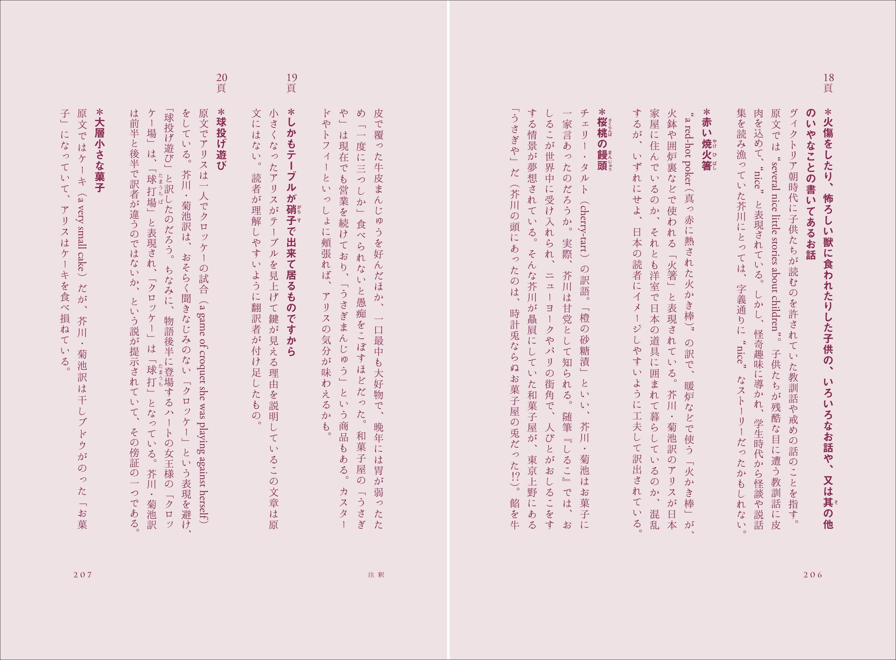 さらに、充実の注釈と解説つき。物語以外の部分もお楽しみいただけます。注釈では、芥川と菊池ならではの翻訳の工夫やこぼれ話を、解説では、翻訳当時の様子や背景について図版をまじえて紹介しています。