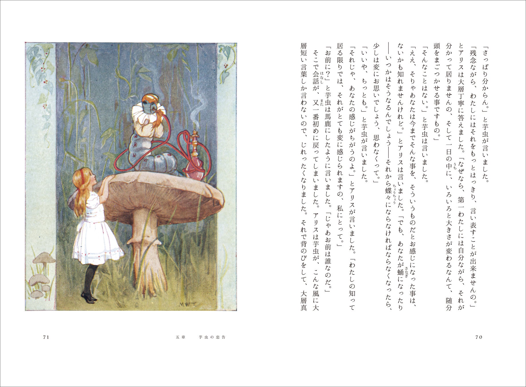そんな夢のような構想が現実となったのが、1927年刊行の『アリス物語』。芥川龍之介と菊池寛による訳文は実に上品でリズミカル! キャラクターはいきいきとユーモラスに描かれ、今なお色あせない魅力にあふれています。