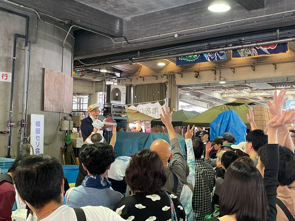 イベント内容としては、早朝に水揚げされた小田原の新鮮な地魚を買うことが出来るイベントや、地魚グルメ店、模擬セリへの参加体験、泳ぐ魚を直接さわることのできるイベント、当日サプライズイベントなどなど、大人も子どもも楽しめる企画がたくさん用意されていました。