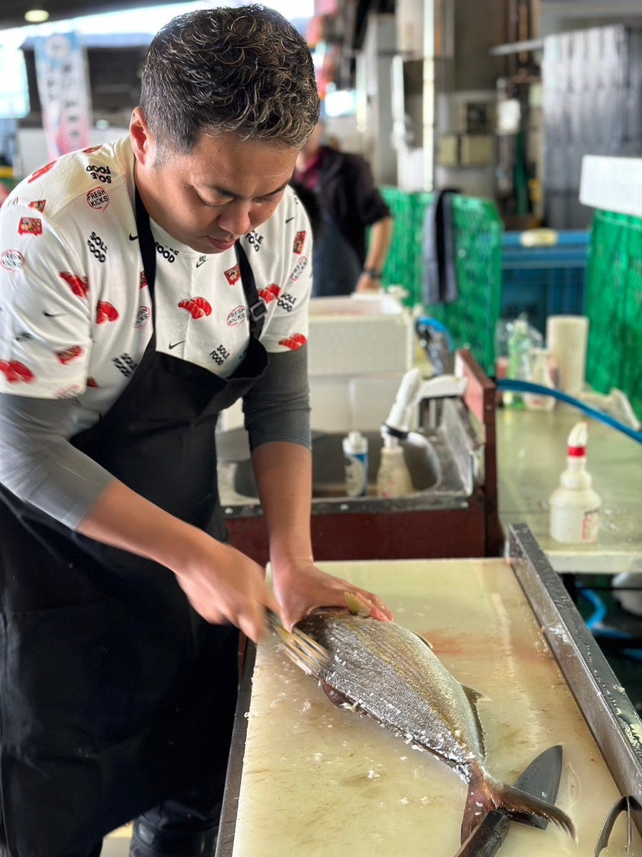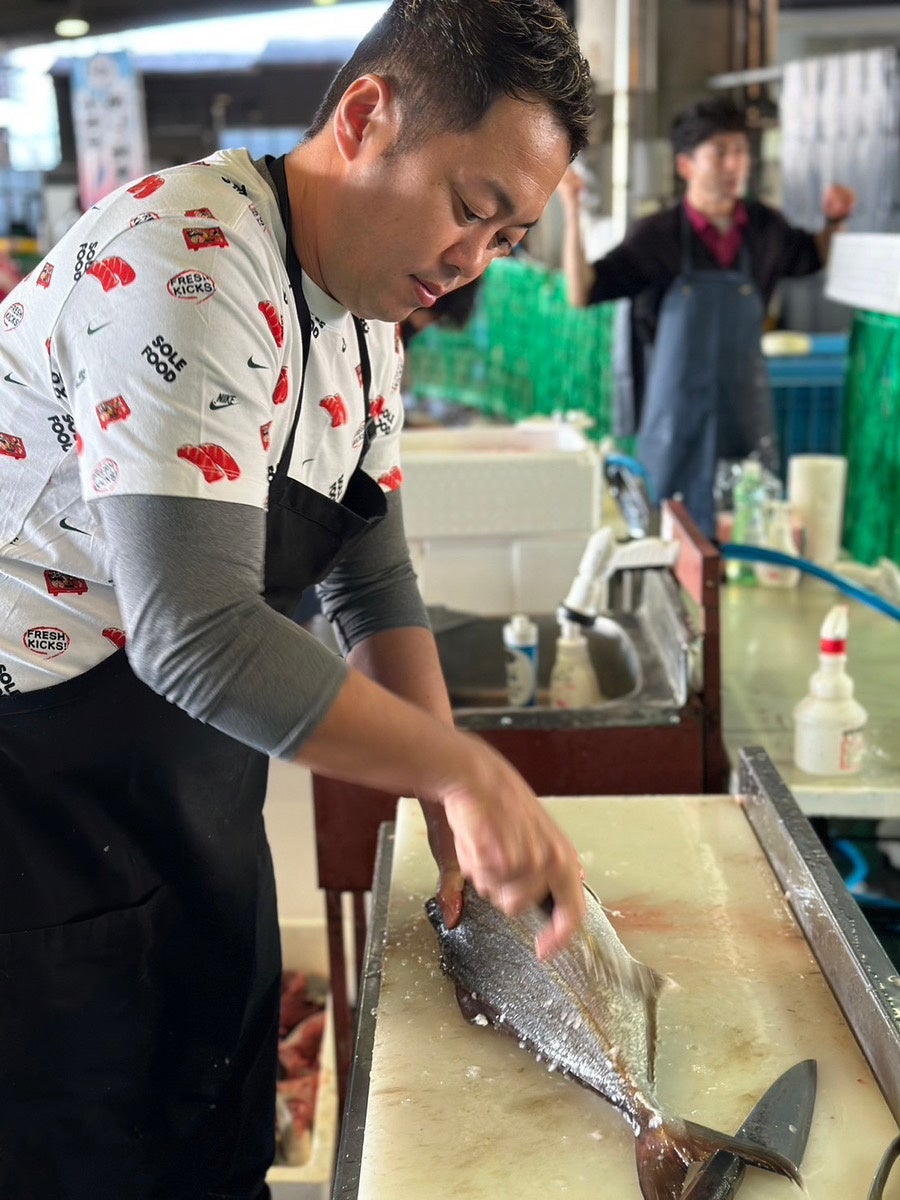 当社の従業員であり、「うお樹水産」として小田原漁港で日々仕入れをしている青木さん。