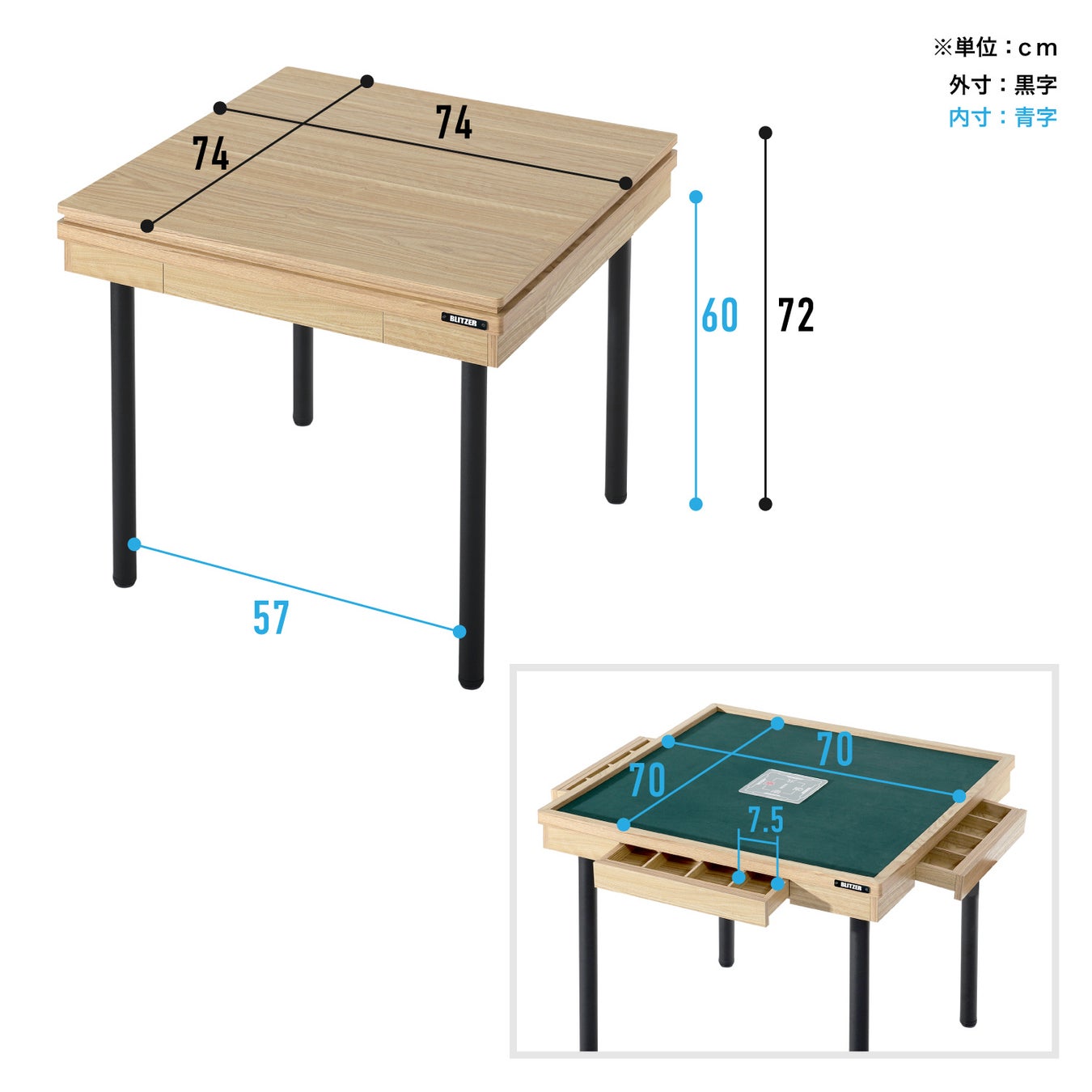 雀荘さながらの本格仕様で、心地よく牌が打てるラシャ生地を一面に採用。麻雀はもちろん、カードゲームなどその他のテーブルゲームも快適にプレイすることが可能です。