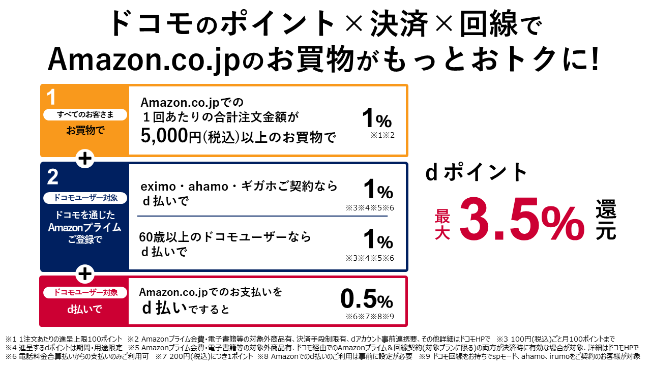 ・ドコモ特設ページ:https://dpoint.docomo.ne.jp/content/amazon/