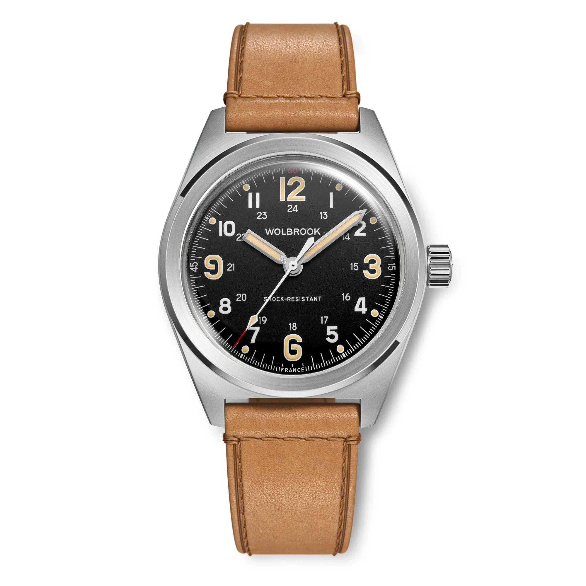 1949年にアメリカで誕生した腕時計ブランド。第二次世界大戦後の実用主義が色濃く残る時代背景の中で、軍用やプロフェッショナル用途に応える“ツールウォッチ”を中心に展開してきました。過酷な環境下での使用を想定し、高い視認性と堅牢性、そして無駄を削ぎ落とした機能美を追求。装飾性よりも実用性を重視した設計思想は、当時の多くのワークウォッチやミリタリーウォッチと共鳴しながら、ブランドの核として確立されていきます。その確かな性能と信頼性から、一部モデルは宇宙飛行士にも愛用されていた記録が残されており、プロフェッショナルの現場においても評価されてきました。しかし1970年代、クォーツショックの影響によりブランドは一度その歴史に幕を下ろします。そして2019年、約半世紀の時を経てWolbrookは復活。創業当時の精神とデザインコードを継承しながら、現代の技術と品質基準を取り入れたコレクションとして再始動を果たしました。現在はフランス・ブザンソンにて組立を行い、日本製ムーブメントを採用。伝統と合理性を融合させたものづくりにより、現代における“実用時計”の新たな価値を提示しています。