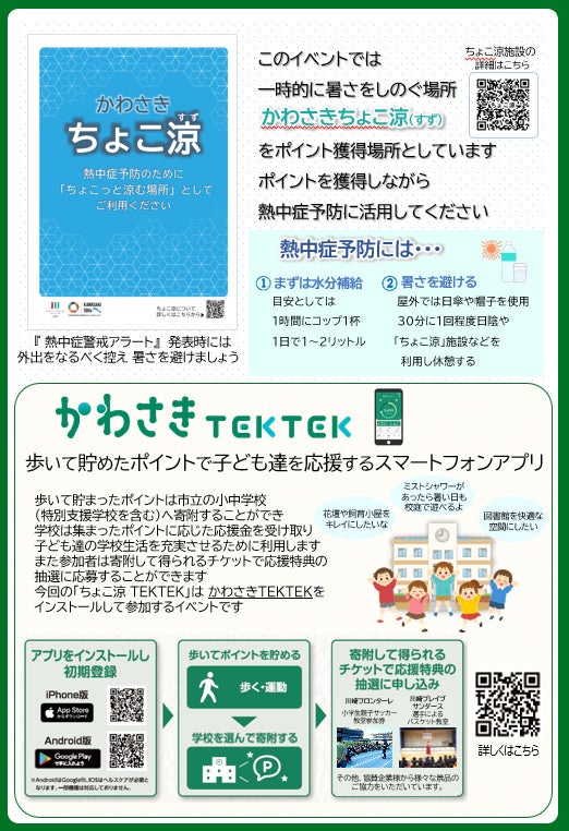 概 要:「かわさきちょこ涼(すず)」のイベント対象施設にて、「かわさきTEKTEK」アプリ