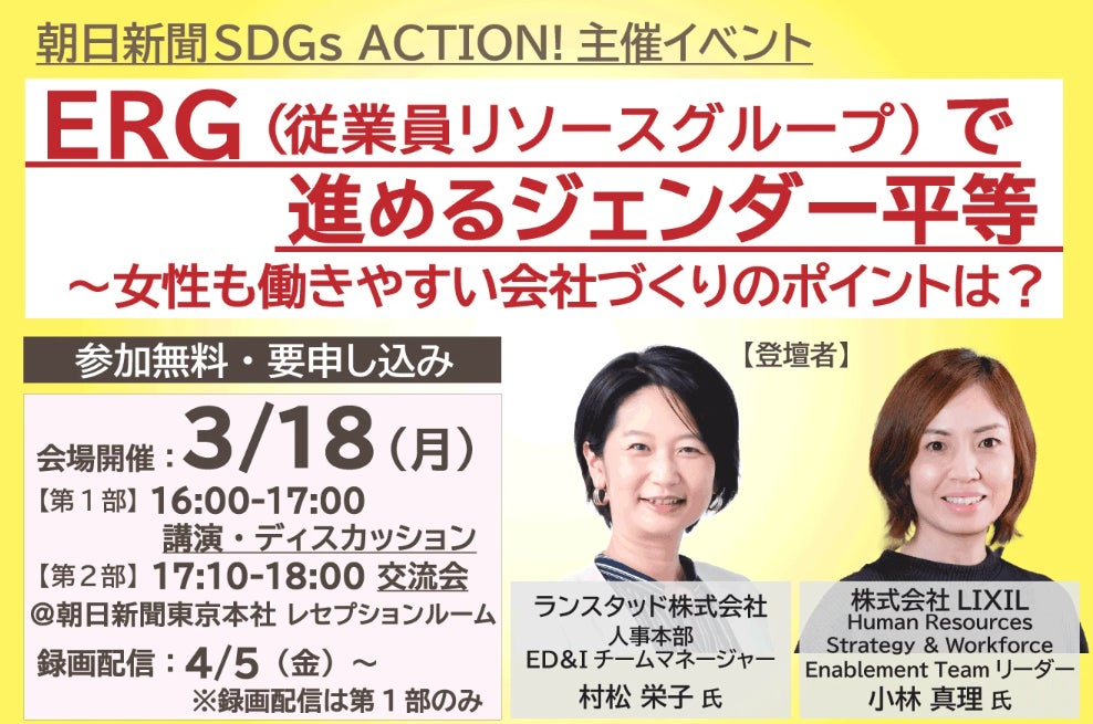 働き方先進国オランダ発祥の人材サービス会社 ランスタッドが「朝日新聞SDGs ACTION!主催イベント」に登壇し多様な人材が生き生きと働ける社内カルチャーの作り方をお話します。