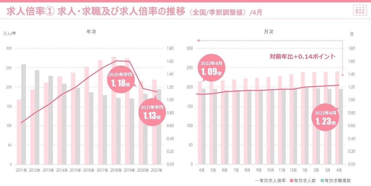 2022年4月度の有効求人倍率は1.23倍。完全失業率は2.5% 労働市場データレポート(2022年4月度版)