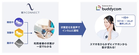 株式会社サイエンスアーツ(所在地:東京都渋谷区、代表取締役社長:平岡 秀一、以下「サイエンスアーツ」)が提供するフロントラインワーカーをつなげるライブコミュニケーションプラットフォーム「Buddycom(バディコム)」は、パラマウントベッド株式会社(本社:東京都江東区、代表取締役社長執行役員:木村 友彦、以下「パラマウントベッド」)が提供する「眠りCONNECT」と連携したことをお知らせします。