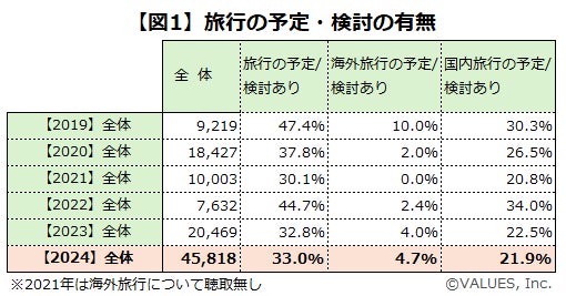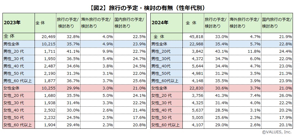 ◆旅行意向は前年から大きな変化なし、20代女性の旅行意欲の高まりが目立つ
