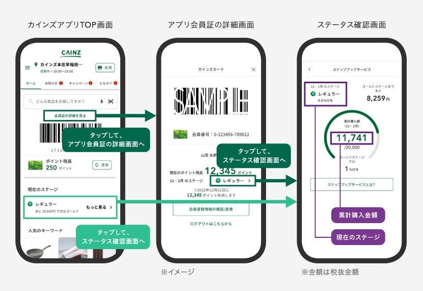併せて、お客様ご自身のステージや累計購入金額を確認できるアプリ機能もスタートします。
