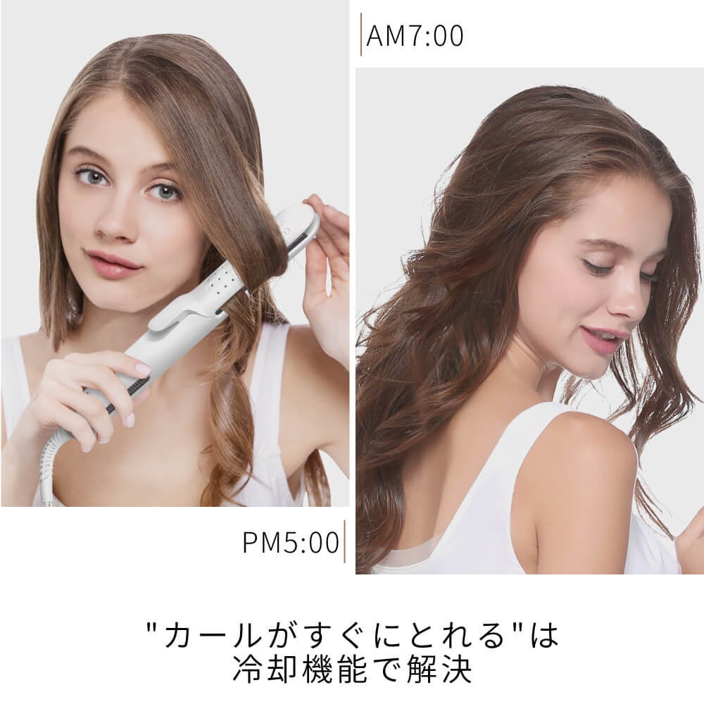 巻き髪もワンカールも、プレート外側の冷却機能で、髪の熱を急冷するからスタイリング長持ち。キューティクルを引き締め、艶もアップ