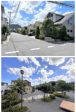 2019 年10 月に販売した46 棟の分譲住宅 『HI・TO・KI・WA』と、同分譲住宅と一体で開発したハーモニーパークからなる街並みです。新型コロナウイルス流行の前に、人が自分らしく輝きつながる=『人(ひと)+輝(き)+輪(わ)』、人が木に寄り添い和む=『人(ひと)+木(き)+和(わ)』という2 つのコンセプトで、流山市の魅力である「誰もが子育てしながら輝き続けることができる」「都心に一番近い森のまち」の具現化を目指した街並みでした。『人+輝+輪』を、主に生活提案(テレワーク)や間取りで、『人+木+和』