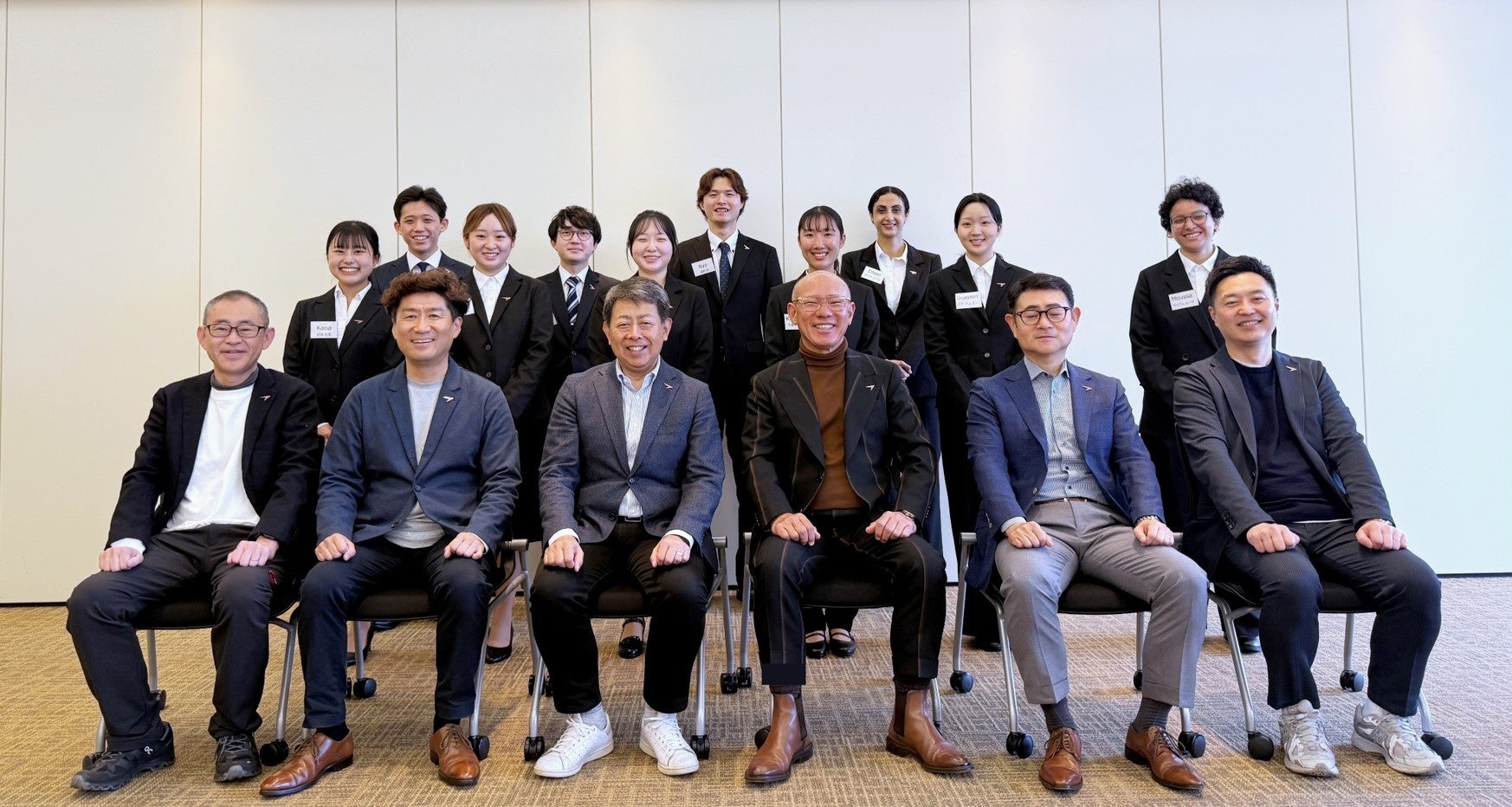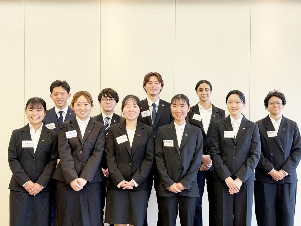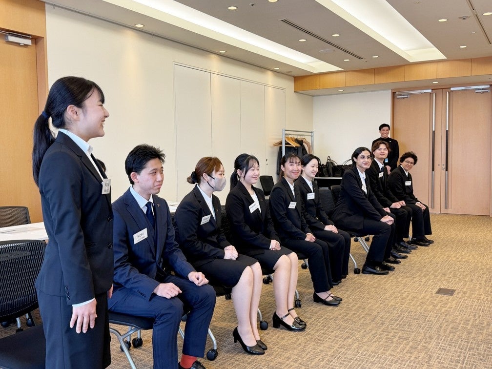 当社は、2026年4月1日(月)に、六本木のミッドタウン内の特設会場にて2026年卒新卒入社式を執り行い、過去最多となる10名の新入社員を迎えました。式では、代表の山川より、新入社員への歓迎と激励のメッセージが贈られ、社名を表す「前へ!」の精神と、グローバルECプラットフォーム企業としての成長戦略とビジョンが共有されました。当社では、事業拡大と経営基盤強化を推進するなか、その中核を担う人材の早期育成を目的として採用を強化しており、新卒社員数は前年の8名からさらに増加し、3年連続の増加となっております。