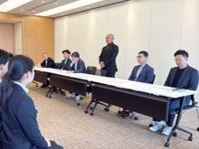 代表取締役 山川博功が新入社員を激励