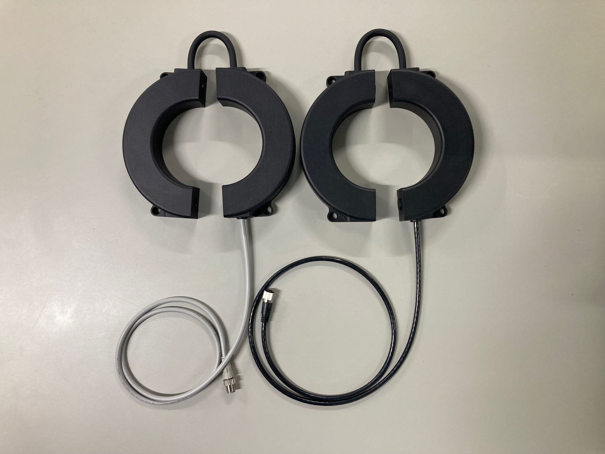 回転体の軸にワイヤレス給電を後付けするなら、分割リング形状がお勧め。パカっと開いて外付けする事で取付時間が大幅に短縮可能。インデックステーブルやロボットハンドなど軸のある回転体向けに画期的な形状だ。