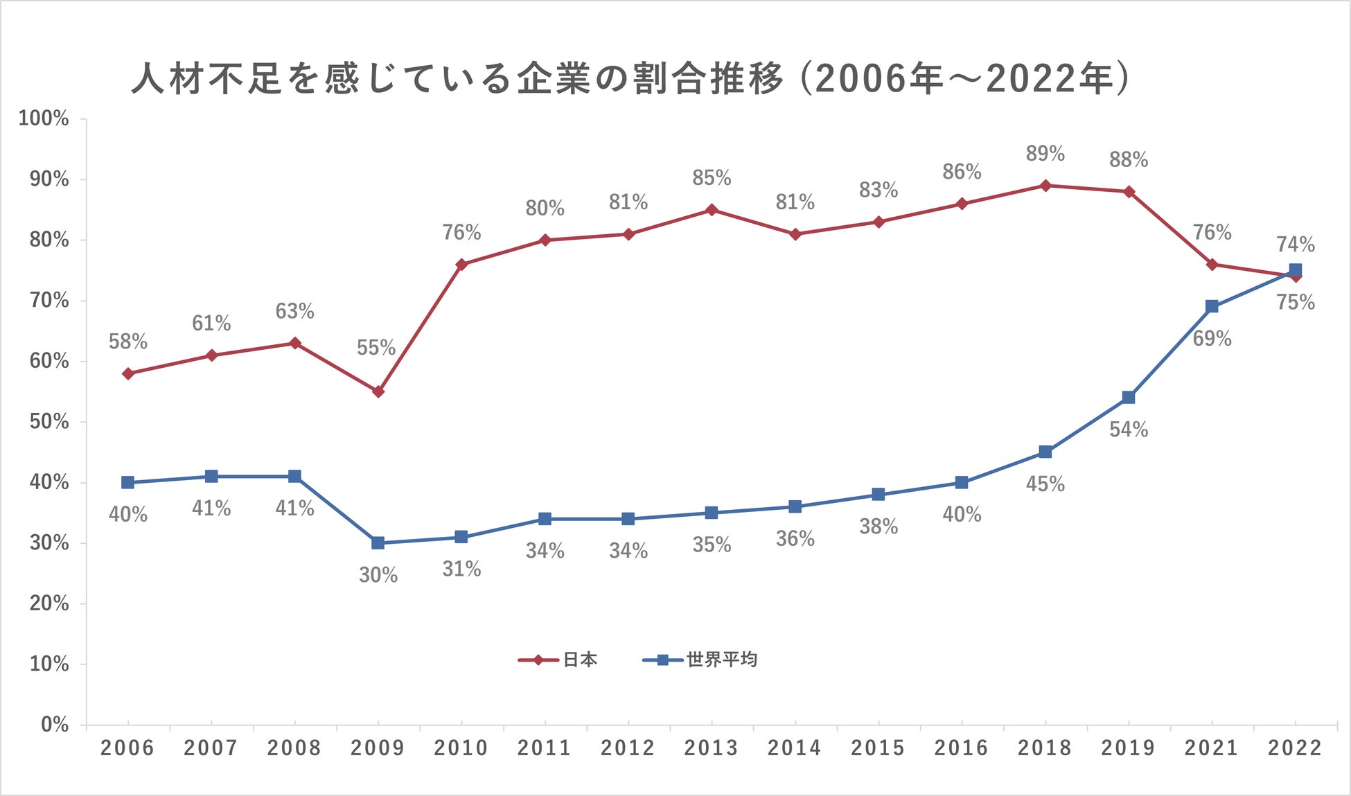 【グローバル/日本の調査結果】人材確保の難易度:世界平均69%→75%、日本76%→74%
