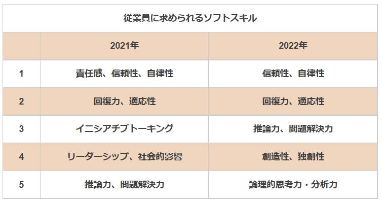 【グローバルの調査結果】従業員に求められるソフトスキル:前回同様「信頼性・自律性」が1位の結果