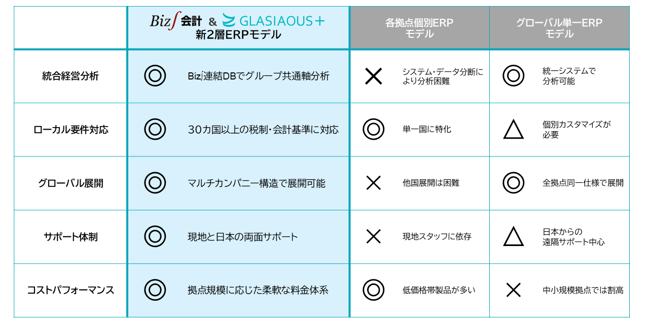 解決策:Biz∫とGLASIAOUS+の連携による新2層ERPモデル