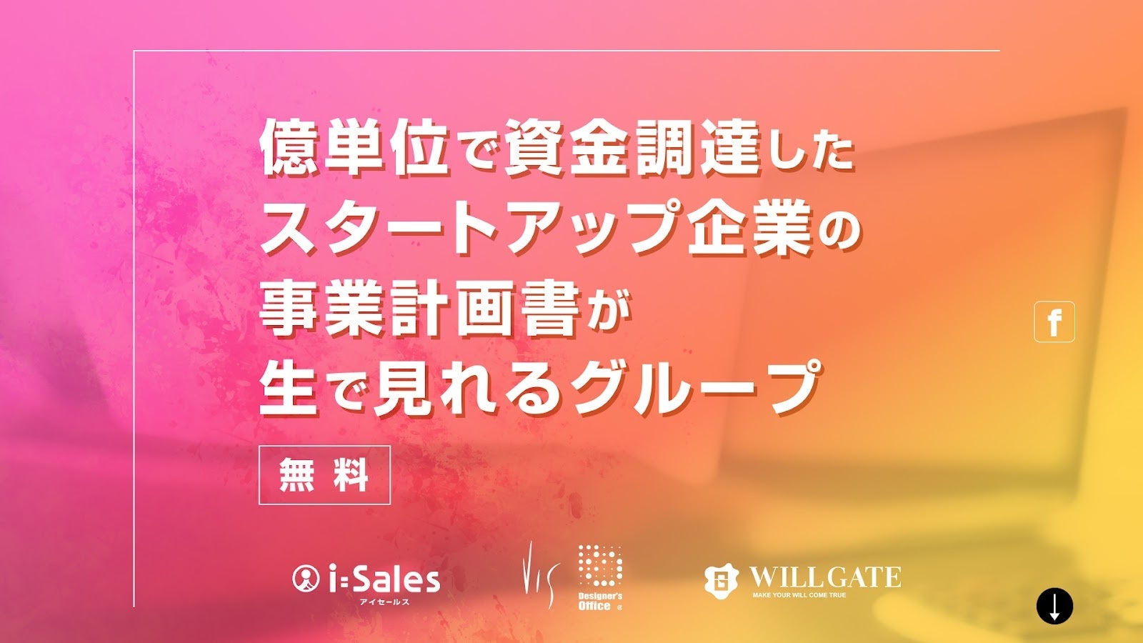 株式会社ウィルゲート(本社:東京都港区、代表取締役:小島 梨揮、以下 ウィルゲート)は、億単位で資金調達したスタートアップ企業の事業計画書が生で見れるグループの運営をアイセールス株式会社(本社:東京都千代田区、代表取締役:田中 亮大)と株式会社ヴィス(本社:大阪市北区、代表取締役社長:金谷 智浩)の2社と共に開始することをお知らせいたします。