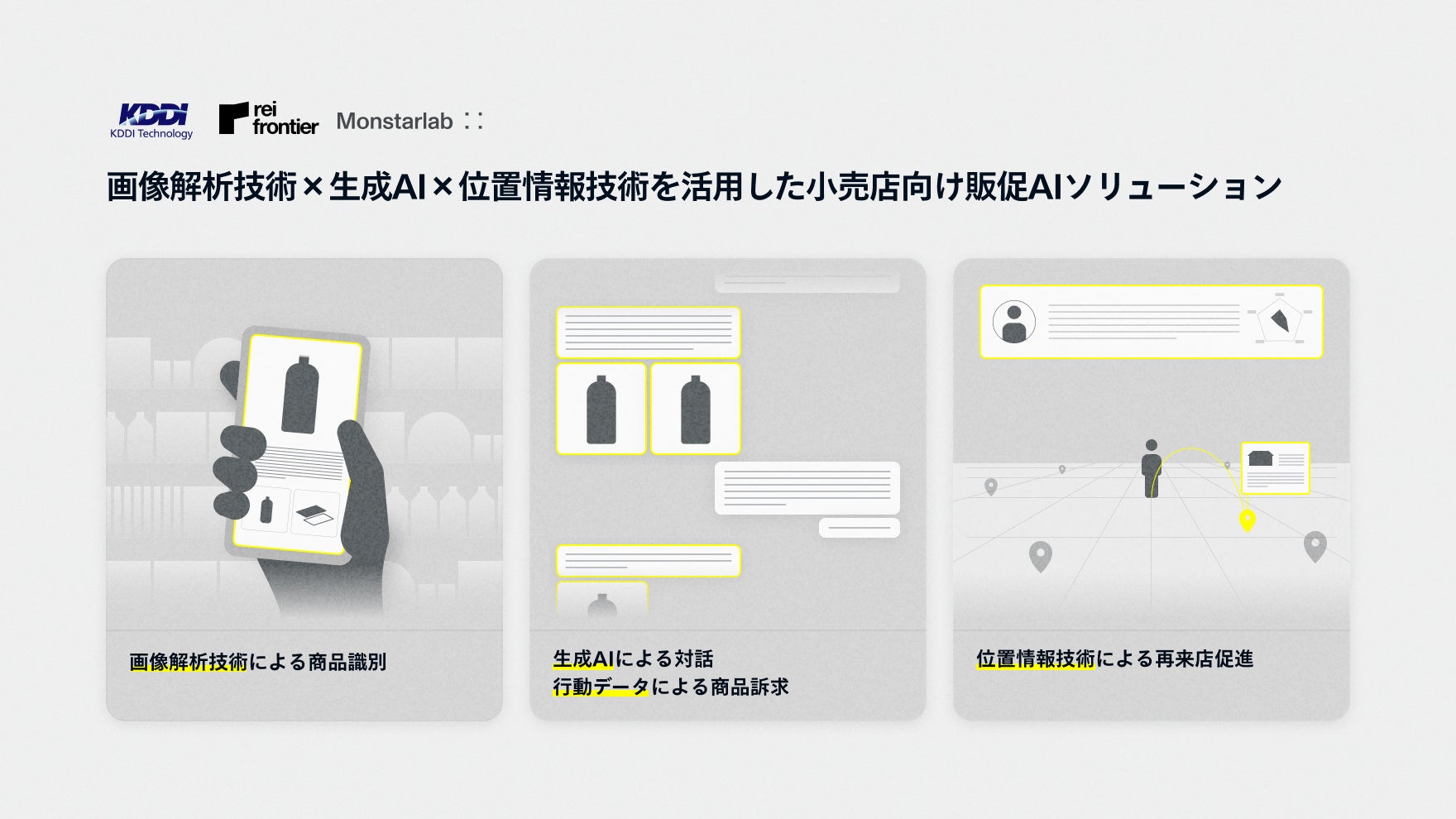 レイ・フロンティア、KDDIテクノロジーの小売店向け販促AIソリューション技術の開発にモンスターラボ社とともに参画し、位置情報技術の活用を支援