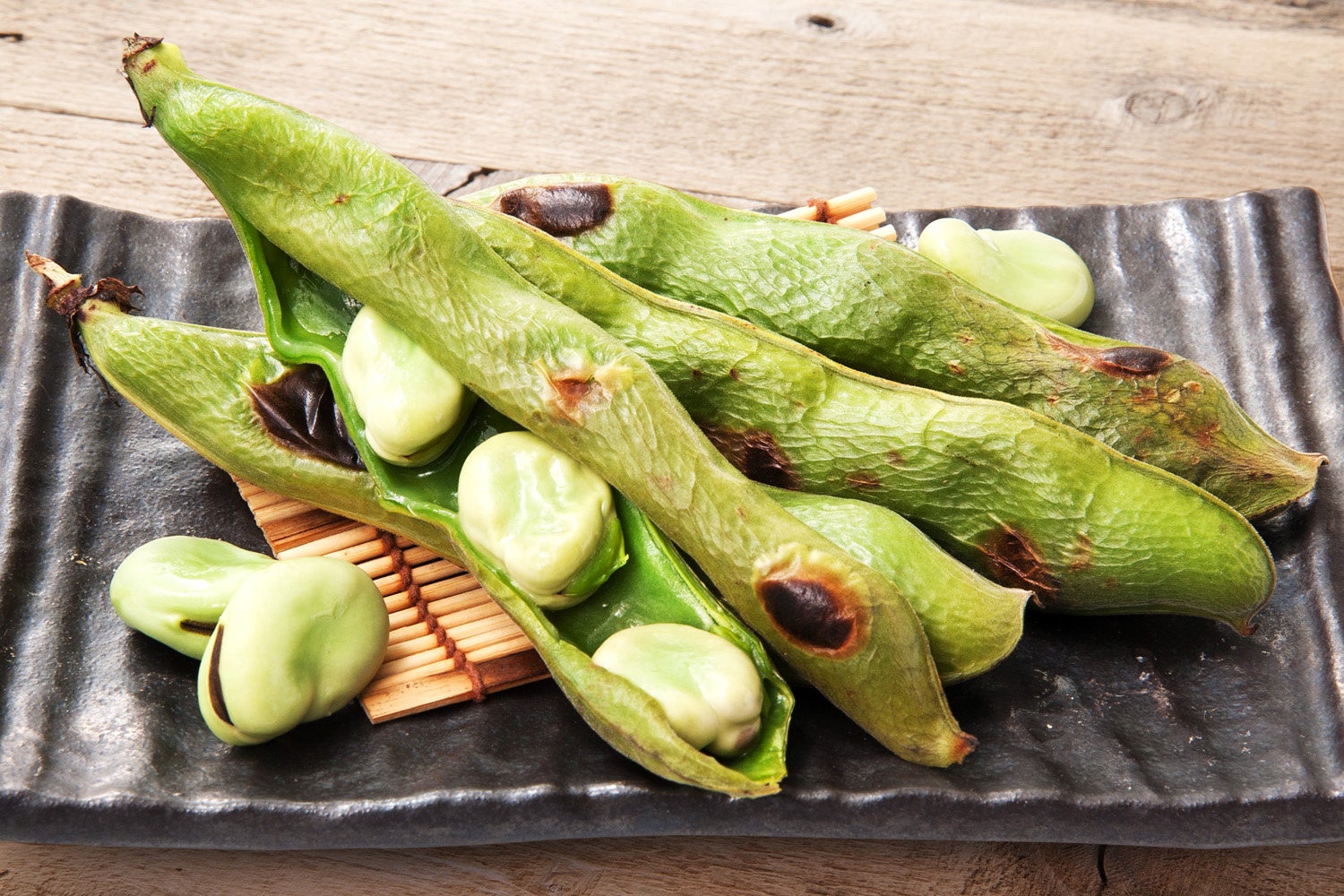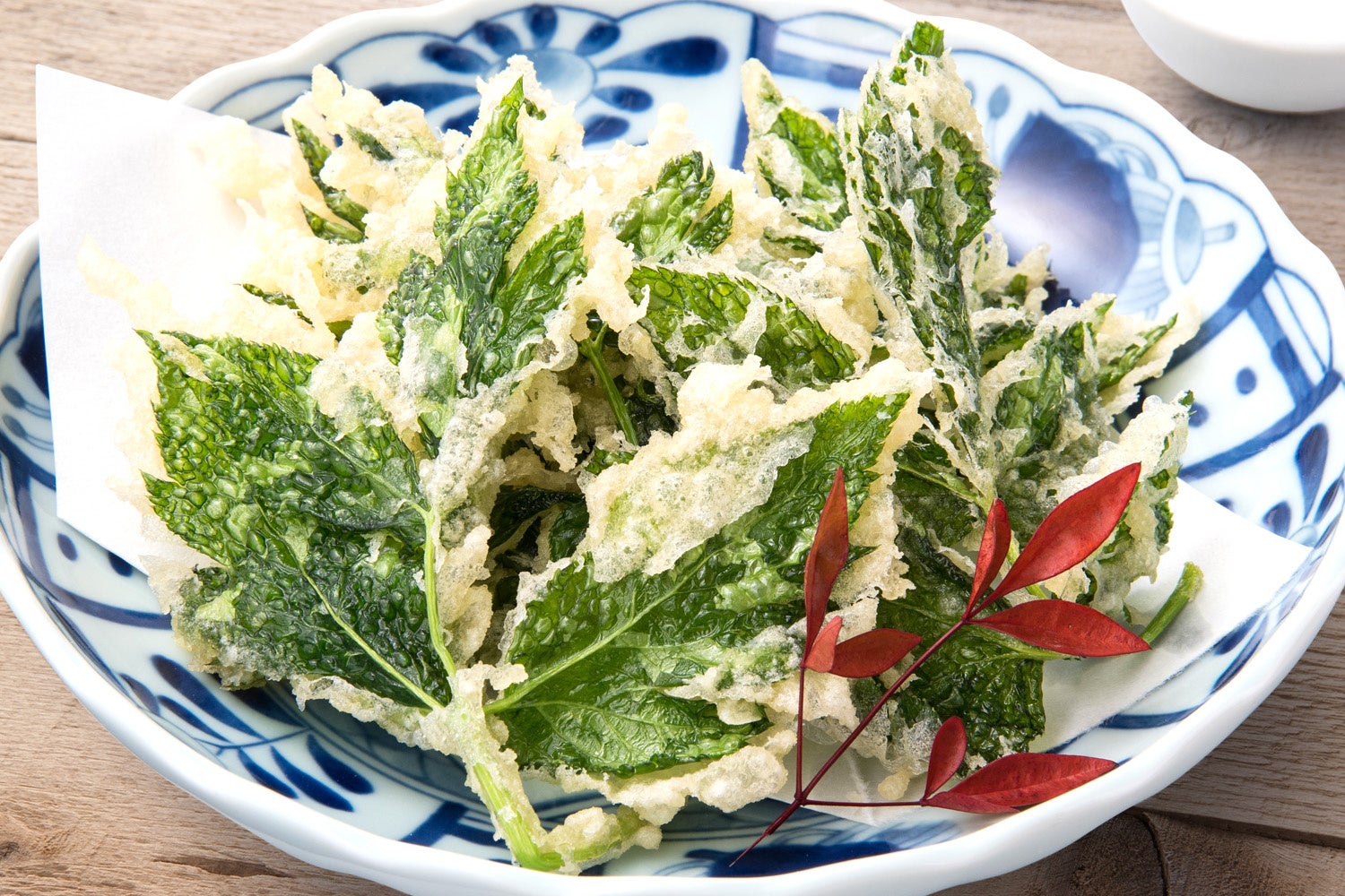 初夏の訪れを感じる5・6月旬メニュー。特に新緑が芽吹くこの時期にしか味わえないイチオシは、「明日葉 天布羅」(450円)と「焼きそら豆」(680円)です。明日葉は「常春の島」と呼ばれる暖かな八丈島などで育てられたものを使用。カラリと揚げ、サクサクとした食感とほのかな苦味と爽やかな香りがあいまった一品に仕上げます。そら豆は香ばしく焼きあげることで、ホクホクとした食感と口いっぱいに広がる濃厚な甘味が楽しめます。
