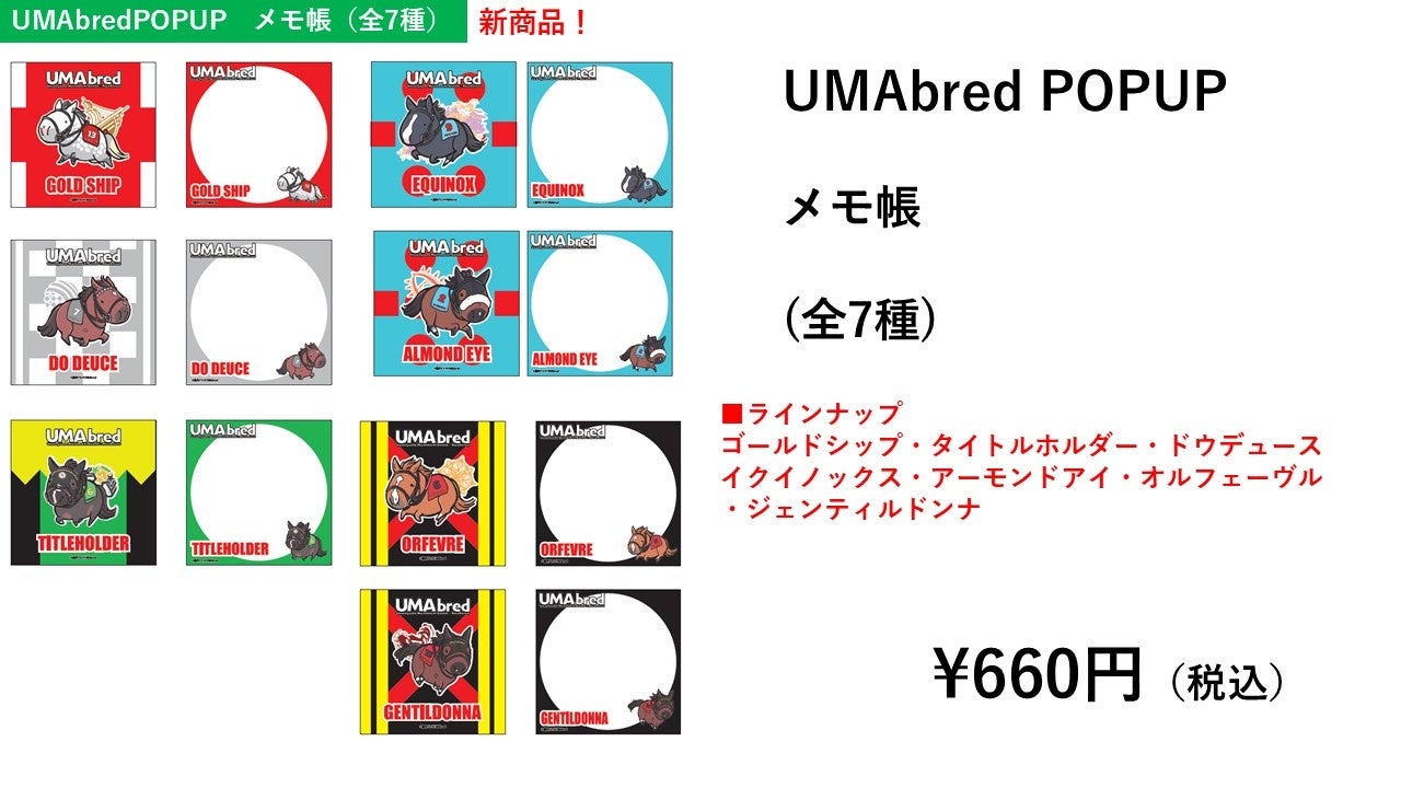 2024年12/19(木)より、実在の競走馬・引退馬を「UMA」(ウマのようなモチモチアニマル)として書き下ろすグッズブランド「UMAbred」のPOPUPイベントを、千葉県(東武百貨店船橋店 4F)にて「UMAbred POPUP!」として開催いたします。