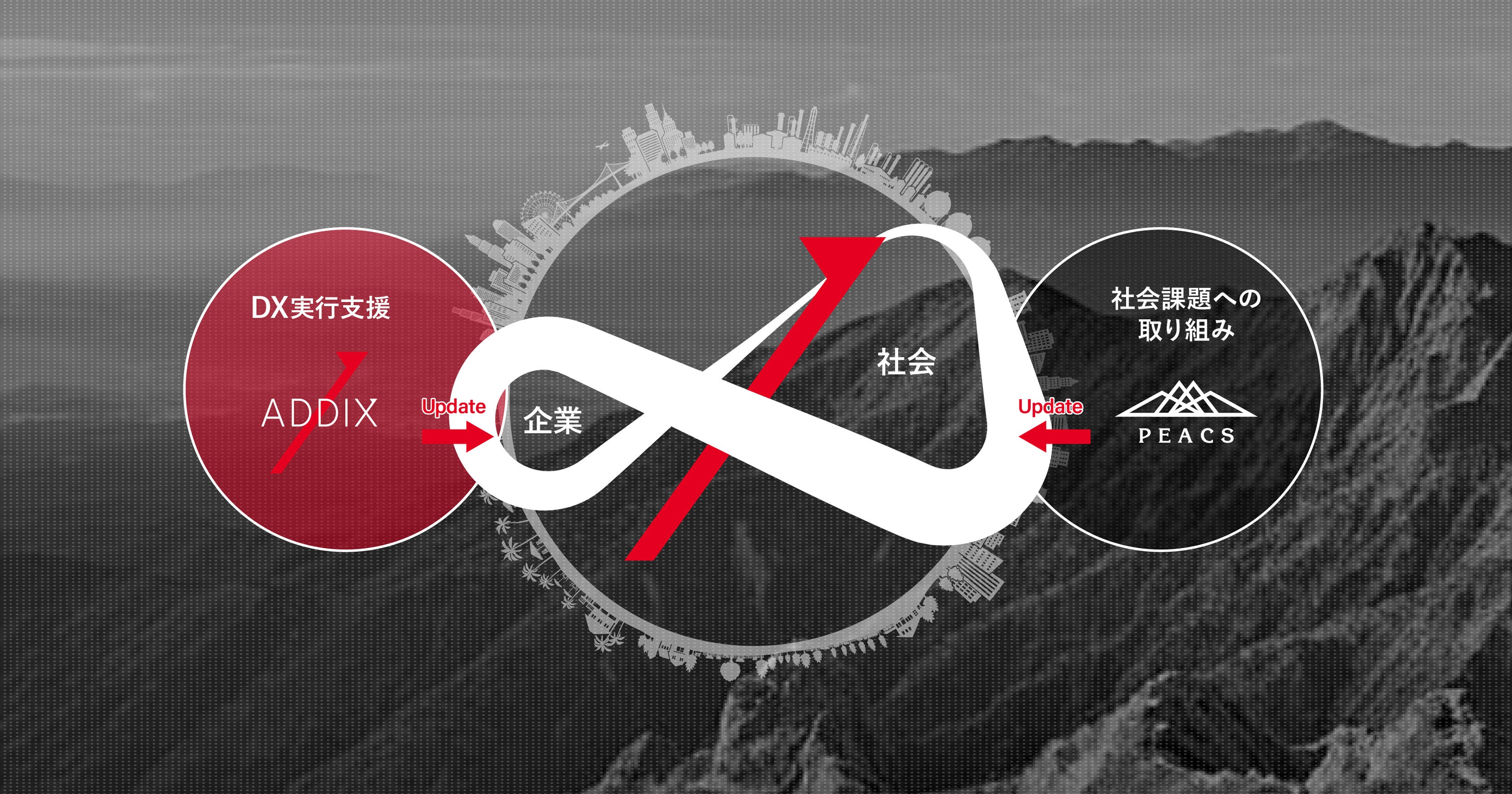ADDIXとピークスは、今後も皆さまのビジネス、サービスの拡大に貢献し、そして社会課題解決へと提供範囲を広げ、進化を続けます。
