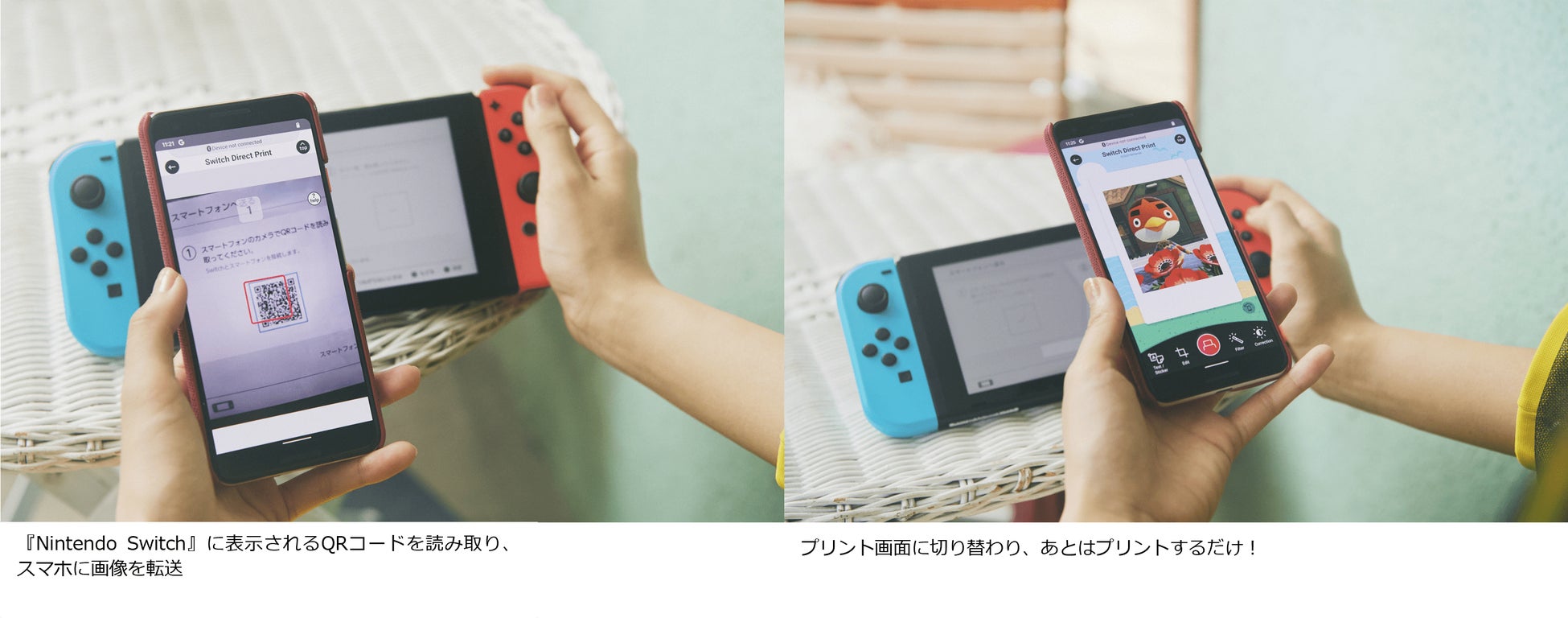 「Nintendo Switch」内にスクリーンショットとして保存した、ゲーム画面の画像や動画から切り出した画像を、「Nintendo Switch」上に表示されるQRコードを専用アプリで読み取るというシンプルな操作により、スマホプリンター「mini Link」シリーズで簡単にチェキプリントにできます。
