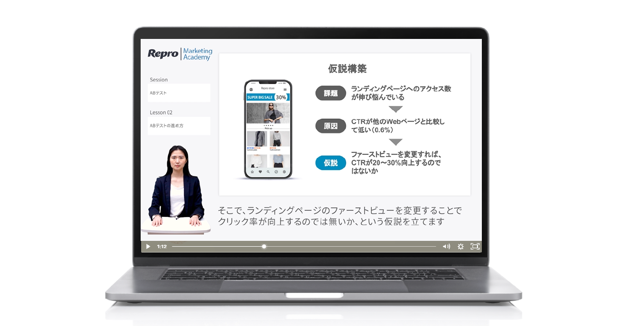 こうした課題における解決の一助となるべく、当社は2021年12月にWeb・アプリマーケティング担当者のスキルアップを目的としたeラーニングプログラム「Repro Marketing Academy(リプロマーケティングアカデミー)」の提供を開始しています。
