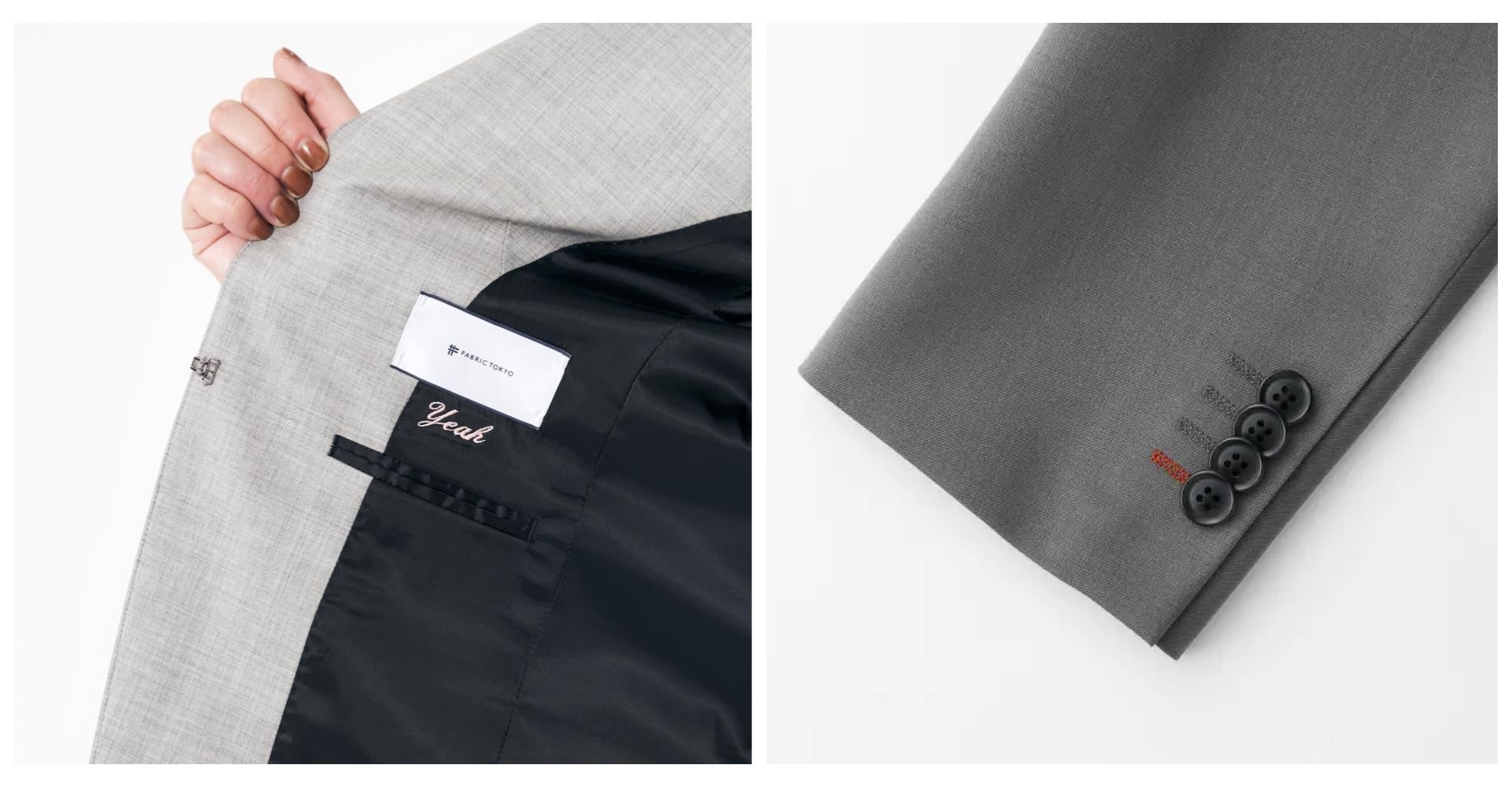 メンズスーツ、ウィメンズパンツスーツのジャケット内側に刺繍ができます。
