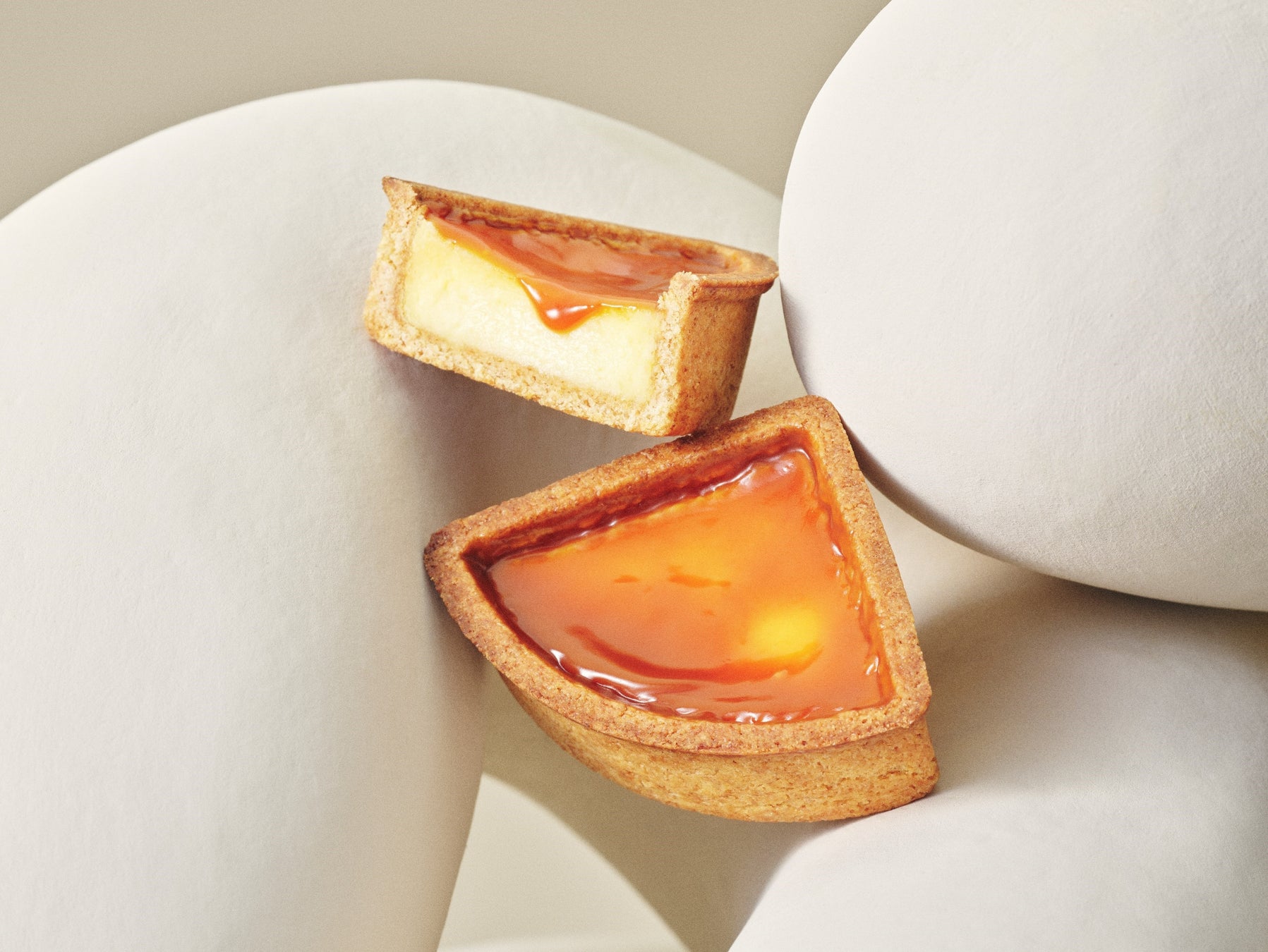 北海道産クリームチーズムースにコク深い焦がしキャラメルソースを重ねた、満足感たっぷりのチーズタルトです。全粒粉を使用したザクザク食感のタルトカップに、濃厚でミルキーなチーズムースを合わせました。こっくりとした甘みと、香ばしいキャラメルソースとのバランスをお楽しみください。