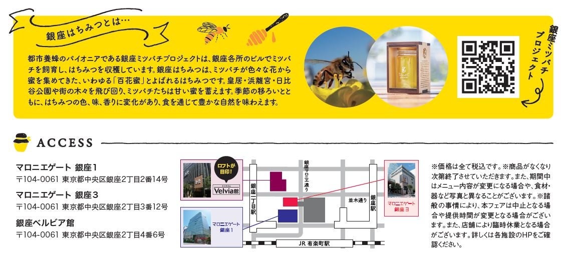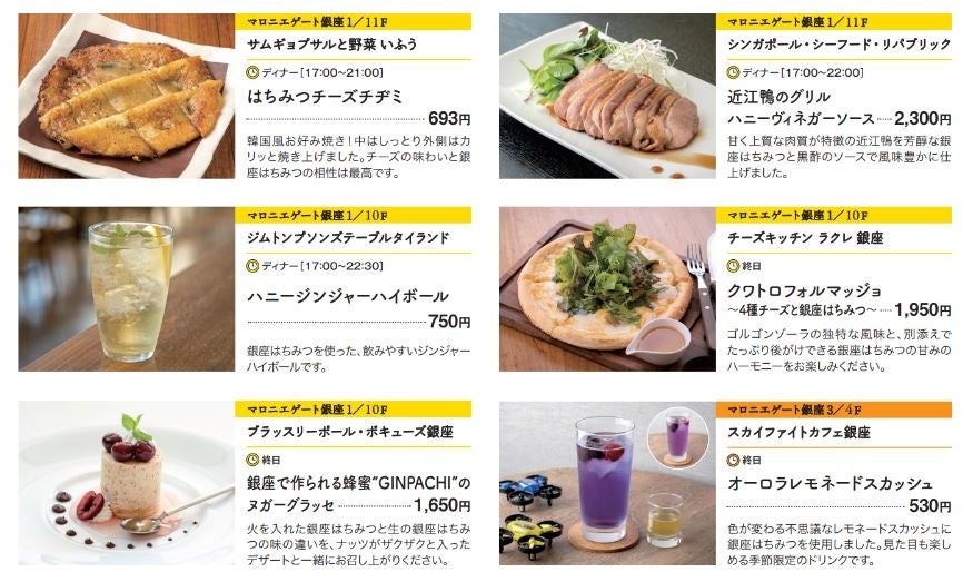 マロニエゲート銀座1屋上の養蜂所で採れた希少な「銀座はちみつ」を使った限定メニューを販売