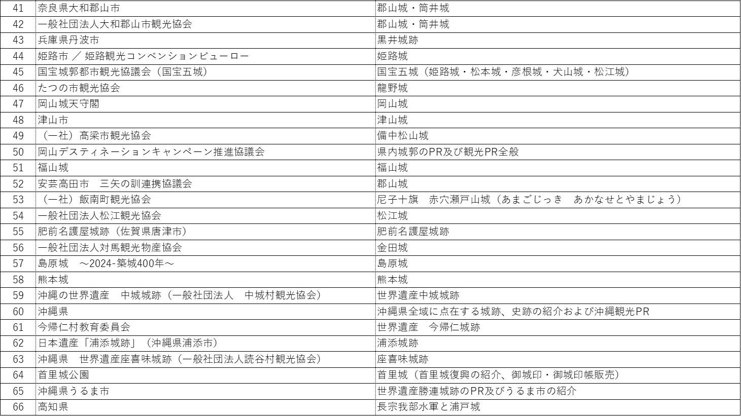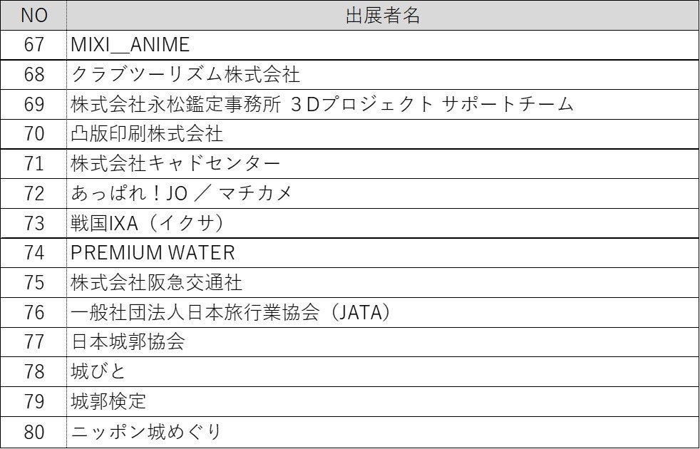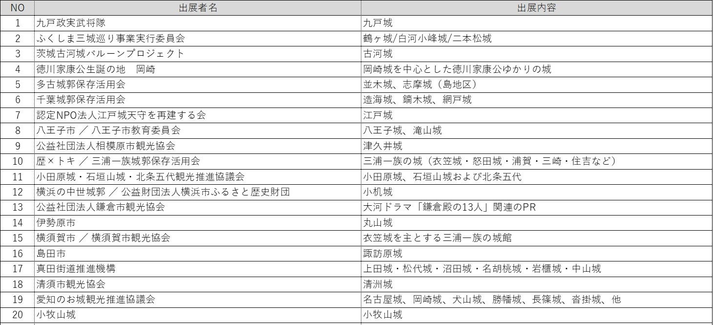 (公益財団法人日本城郭協会、城びと<株式会社東北新社>、株式会社ムラヤマ、パシフィコ横浜)