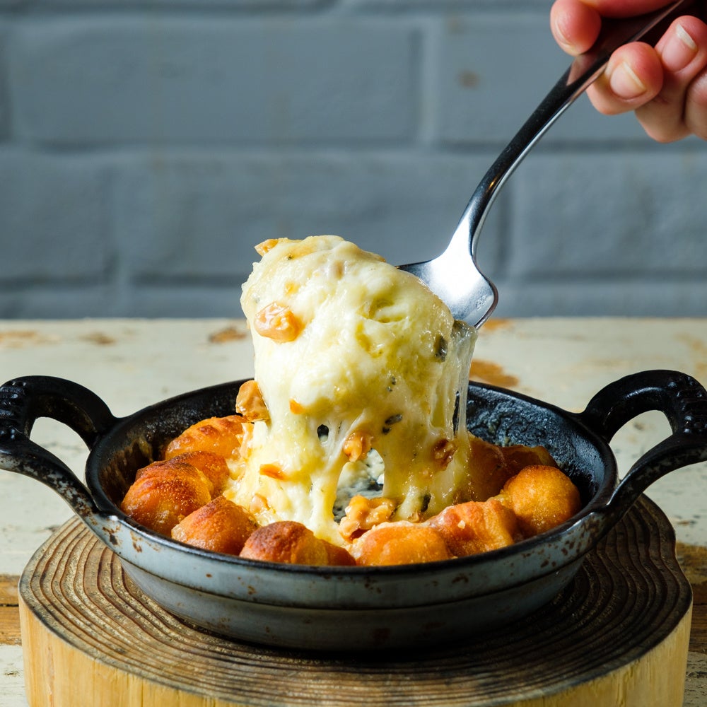 パスタの麺にもこだわりがあり、Cheese Tavern CASCINA オリジナルで作っていただいている生パスタを使用しております。そばやうどんのような断面が角張った「キタッラ」という種類のパスタを使用しております。全粒粉を使用しているため小麦の香りが強く、コクのあるチーズソースにも負けない存在感のあるパスタです。