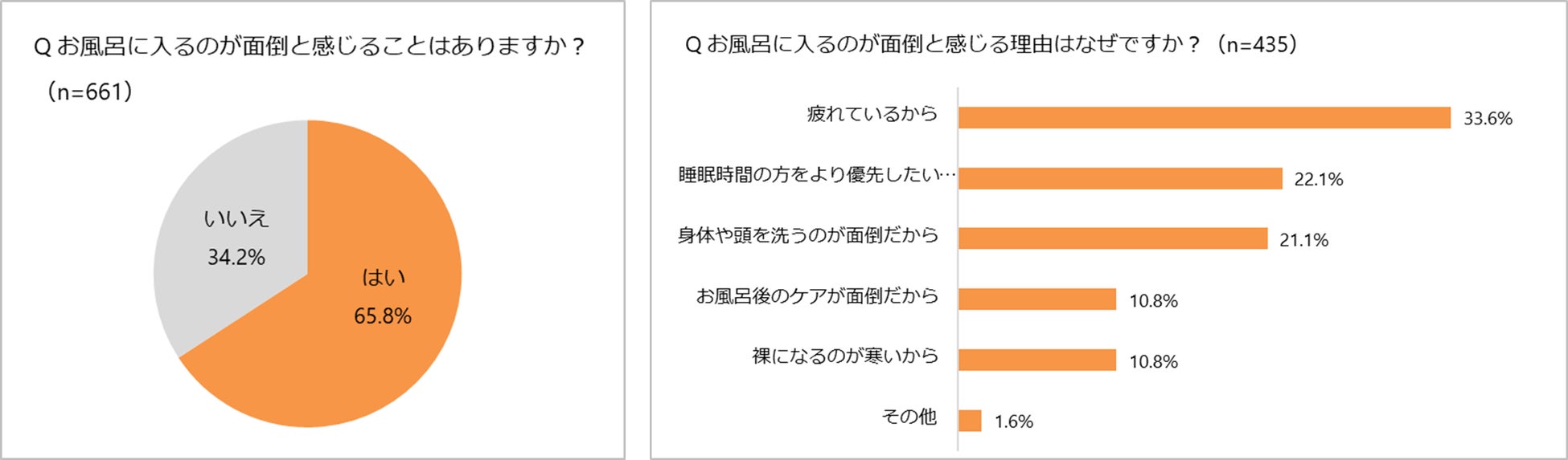 ■65.8%が「お風呂に入るのが面倒と感じたことがある」と回答