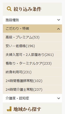 こだわり条件や介護度・認知症などの絞り込み項目を追加──希望にマッチした施設探しを実現