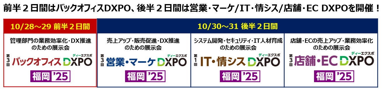 代表取締役社長 新村祐三、東証グロース上場 証券コード:9272)は、10月30日(木)・31日(金)の2日間「第3回 営業・マーケDXPO福岡’25」をマリンメッセ福岡にて盛大に開催する。来場対象者は、DX推進に課題を持つ経営層に加え、営業、マーケティング、Web担当、集客・販促・PR担当の方々である。