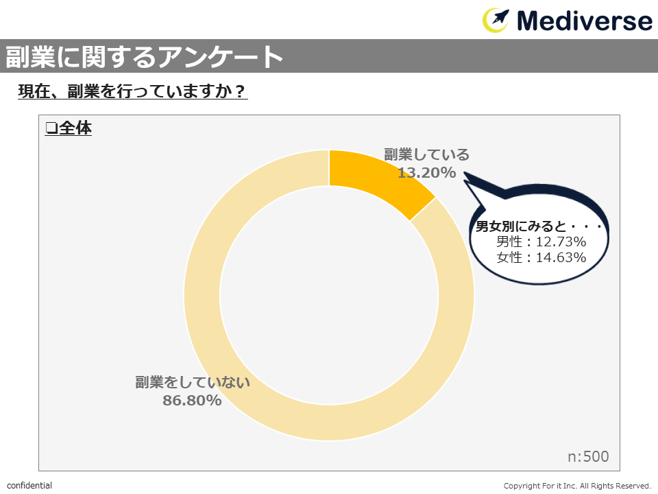 では、このような状況下で、実際に副業を行っている割合はどのくらいいるのか、この度、Mediverseは独自でアンケート調査を実施いたしました。