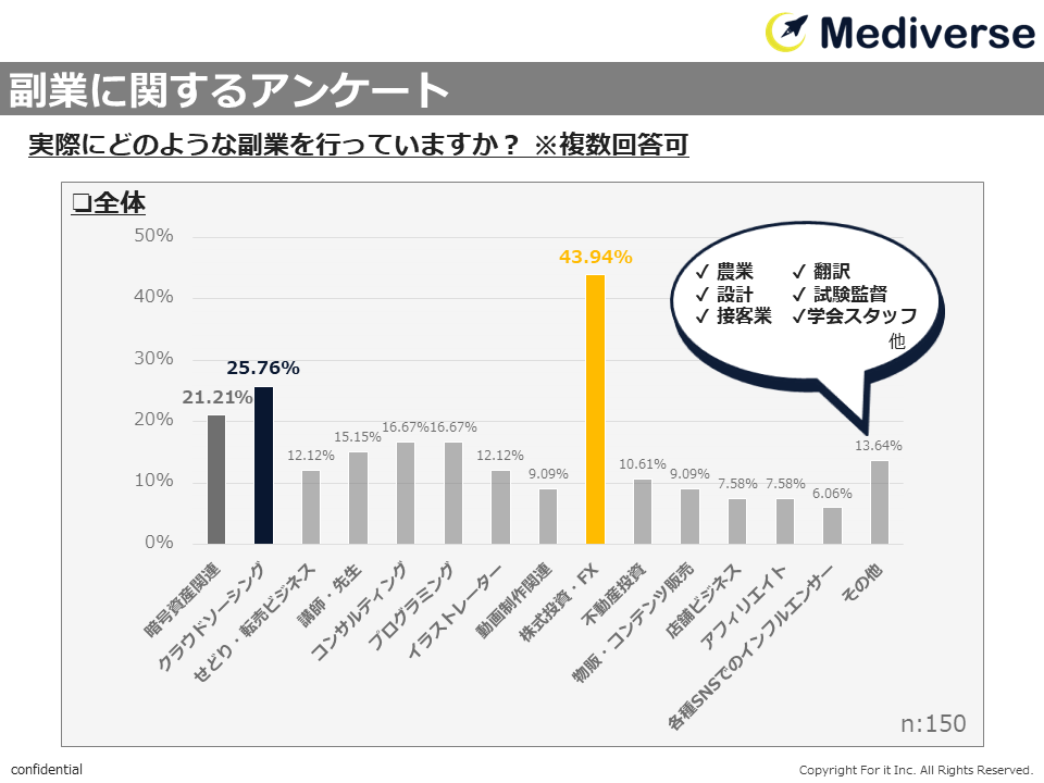 株式会社フォーイットが運営するWeb3メディア「Mediverse(メディバース)」は、『副業に関するアンケート』を独自で行いましたので、その調査結果をお知らせいたします。