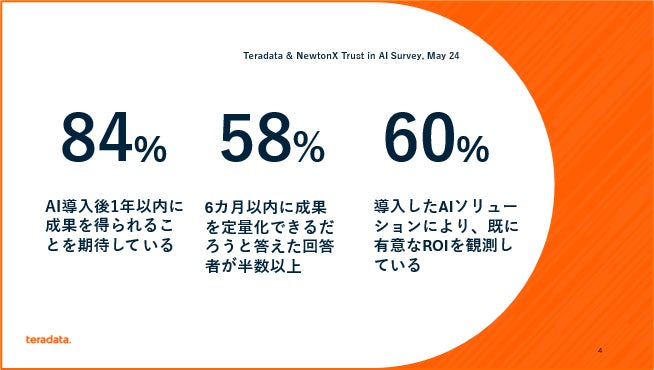 また、回答者の60%は、すでにAI活用により「実証可能なROI」を実現したと回答しました。