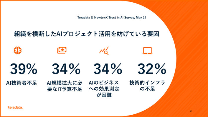 ・AIプロジェクトの拡大を阻んでいる主な要因として下記が指摘されました: