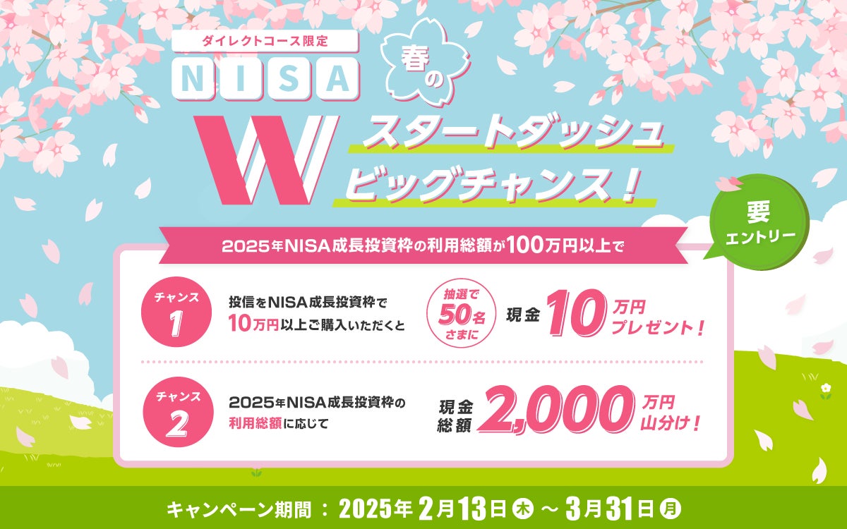 【ダイレクトコース限定】NISA春のスタートダッシュWビッグチャンス!開始のお知らせ