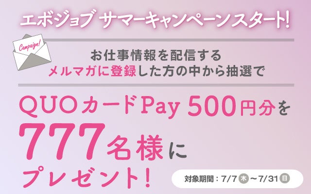 7月7日七夕からスタート!『エボジョブ サマーキャンペーン』!~エボジョブメルマガ登録者から777名にQUOカードPayをプレゼント