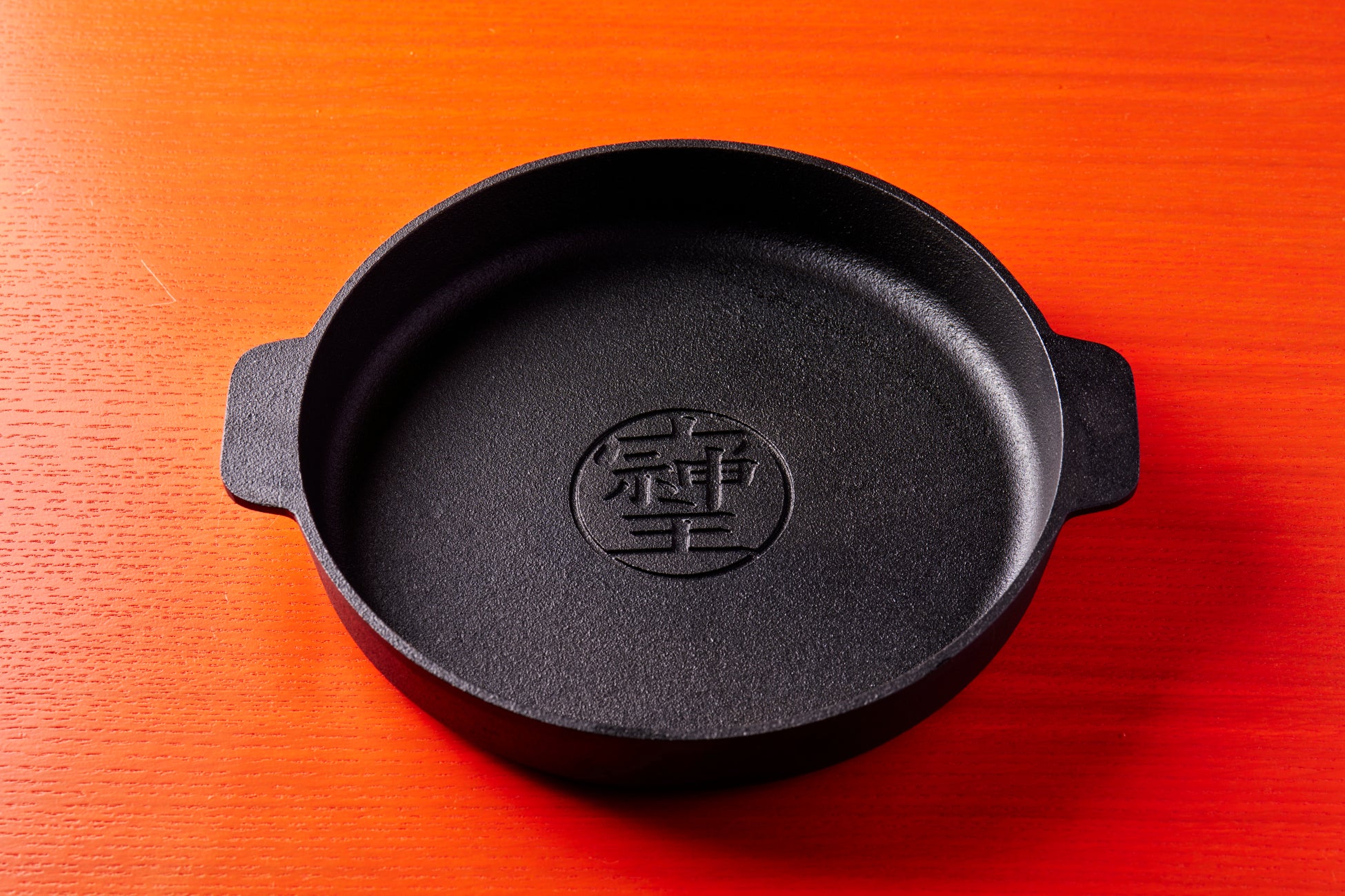 伝統工芸・南部鉄器による、「和牛すき焼き そしじ」専用の特注鍋。厚みのある鉄鋳物は豊かな蓄熱性をもち、鍋全体に均一な熱を伝えます。肉の旨味を逃さず香ばしく焼き上げ、野菜や豆腐にはじっくりと熱を届けて、素材の味わいを丁寧に引き出します。当店のために設えた一鍋でご堪能ください。