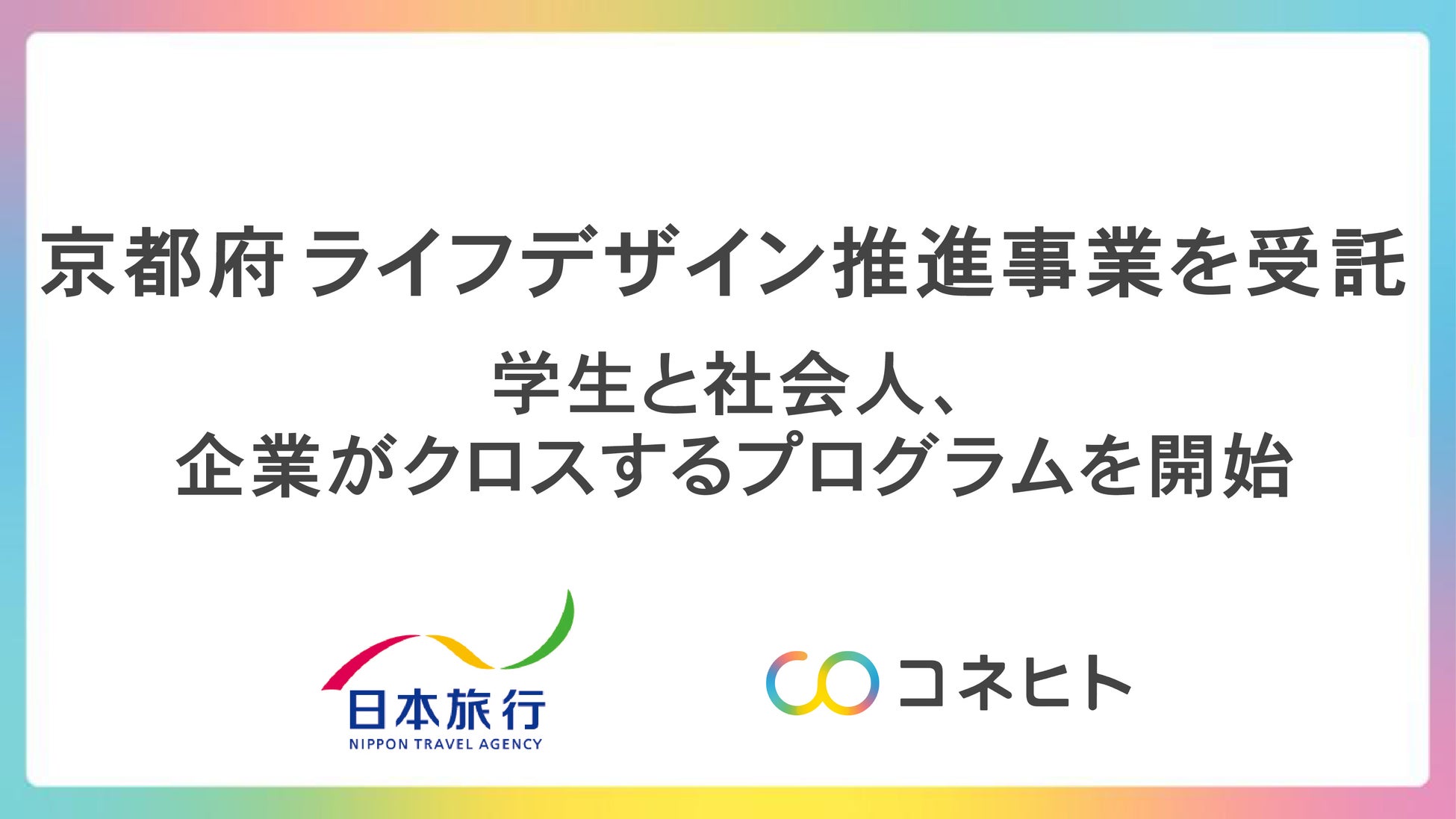 コネヒト株式会社(本社:東京都港区、代表取締役社長 杉井信一郎、以下「コネヒト」)は、京都府の令和7年度「京都若者ライフデザイン推進事業(仕事と育児の両立体験プログラム)業務」を株式会社日本旅行(本社:東京都中央区、代表取締役社長 小谷野悦光、以下「日本旅行」)とともに受託したことをお知らせいたします。
